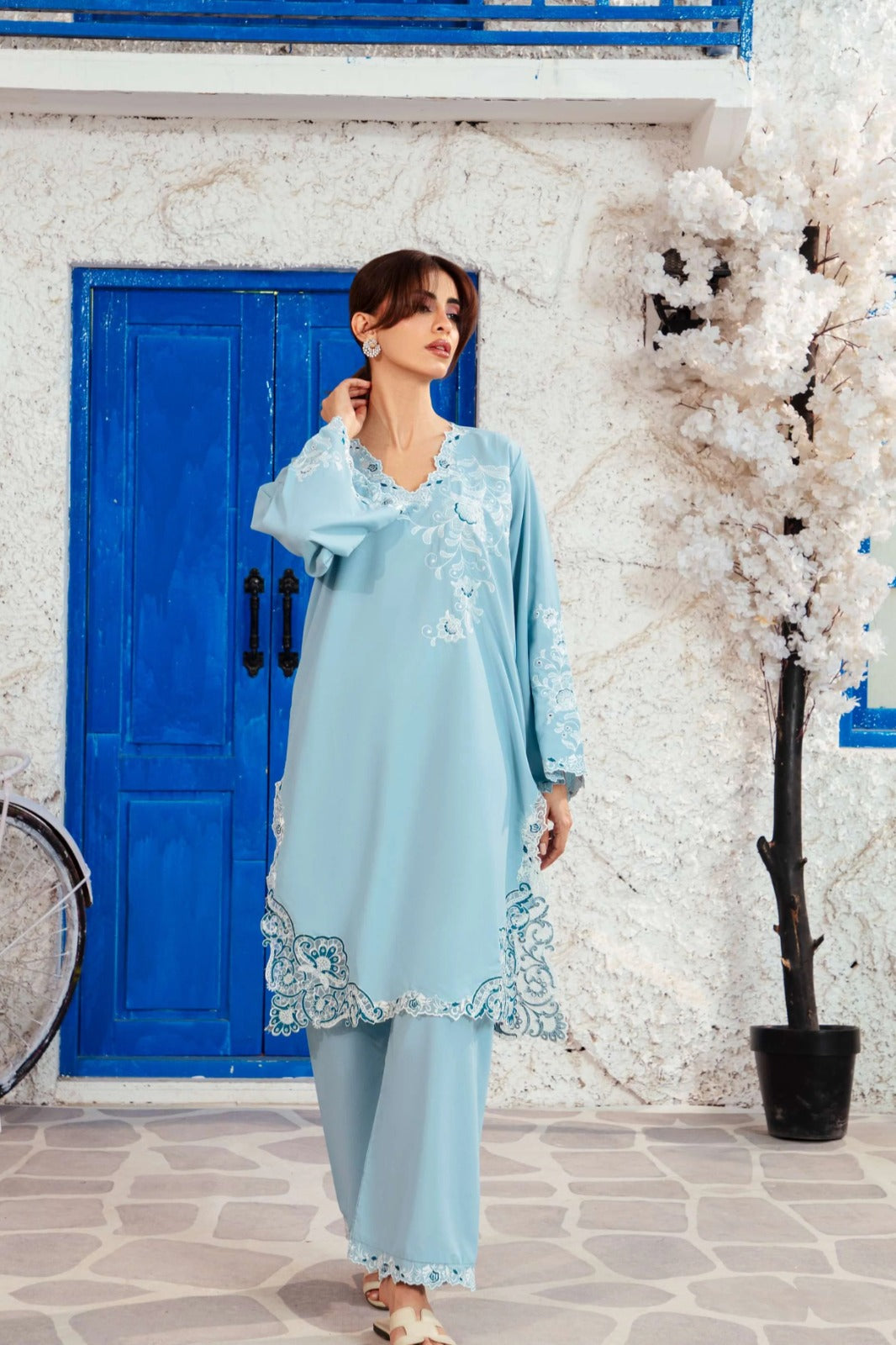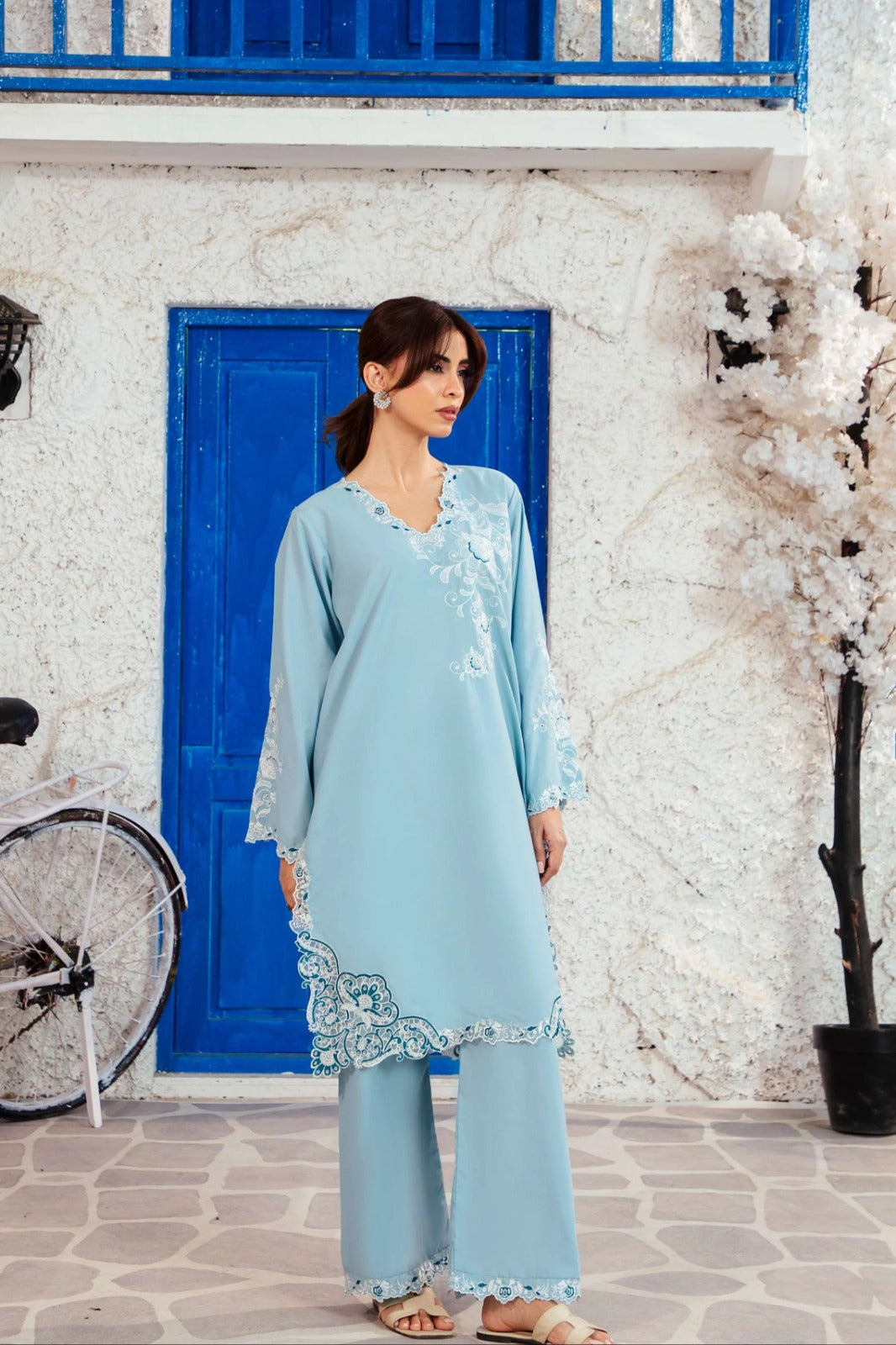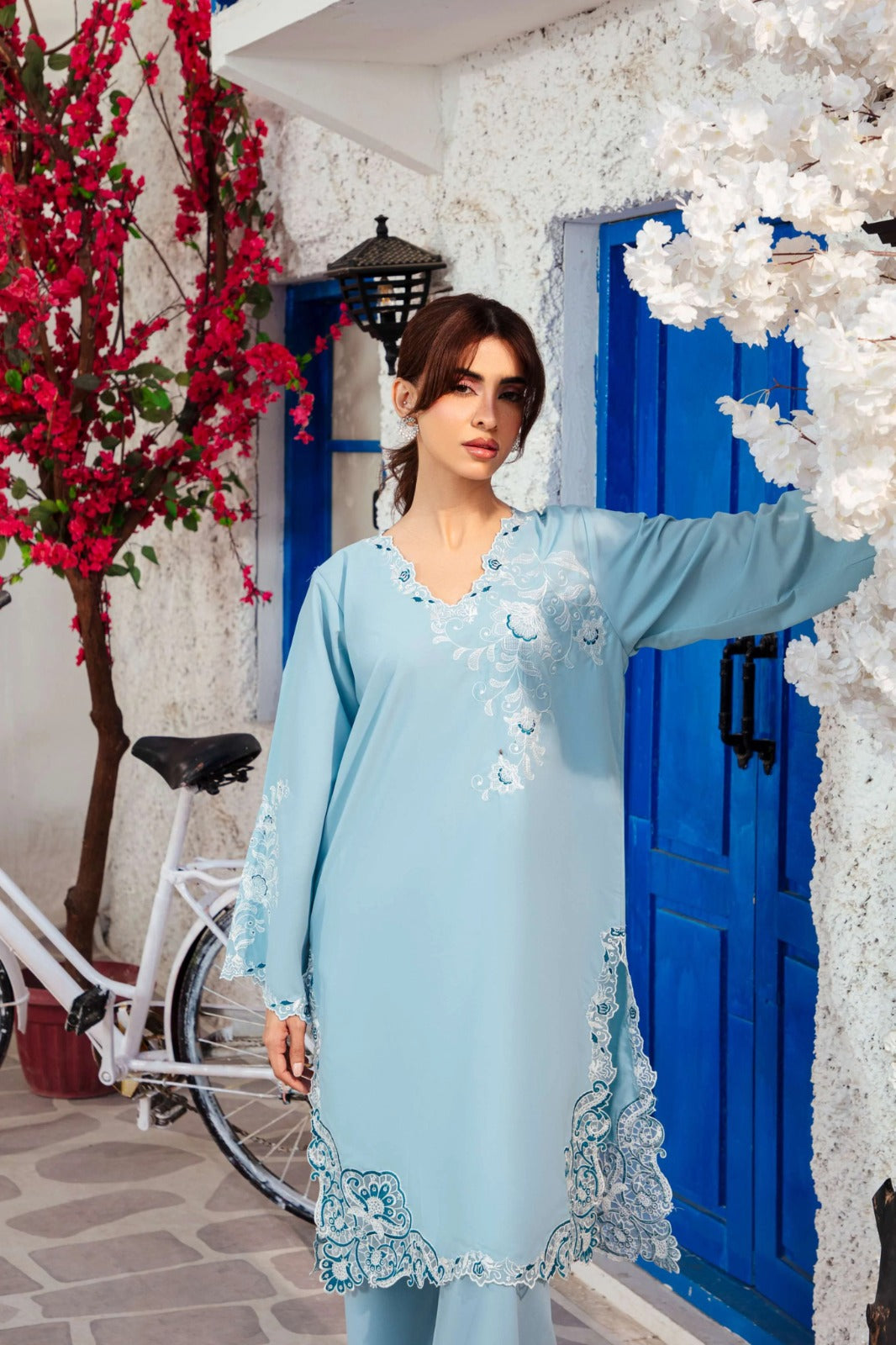 - Two Piece Stitched Embroidered Shirt with Trouser