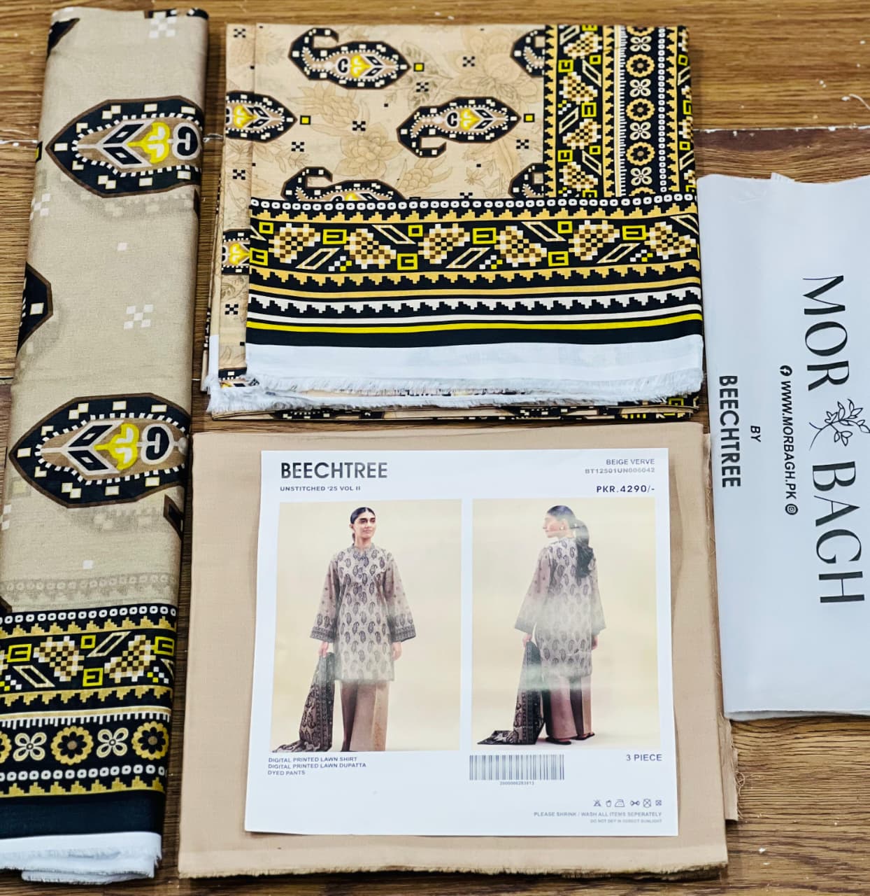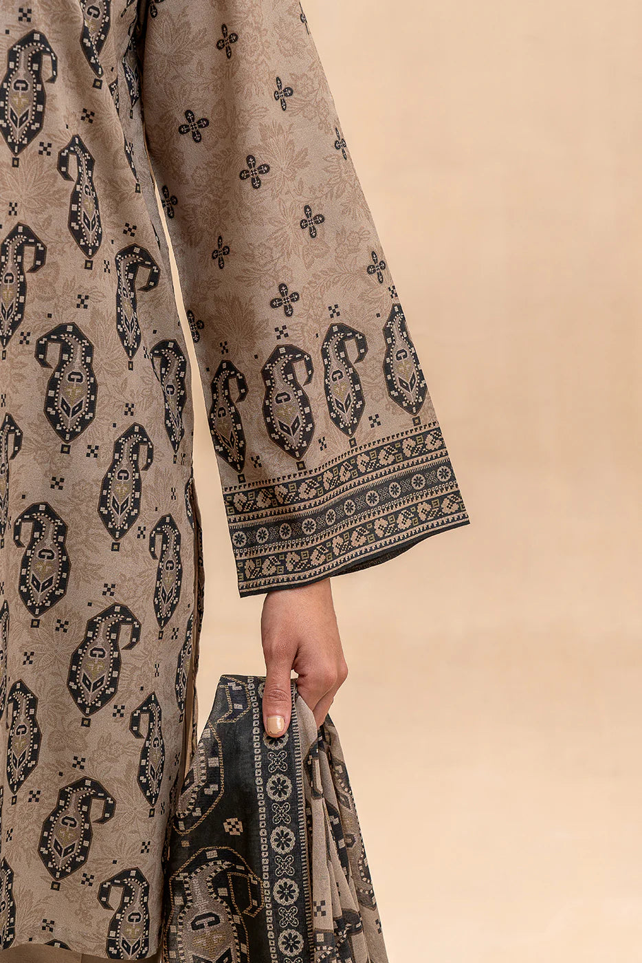 BeechTree 3 PIECE PRINTED LAWN SUIT-BEIGE VERVE (UNSTITCHED)