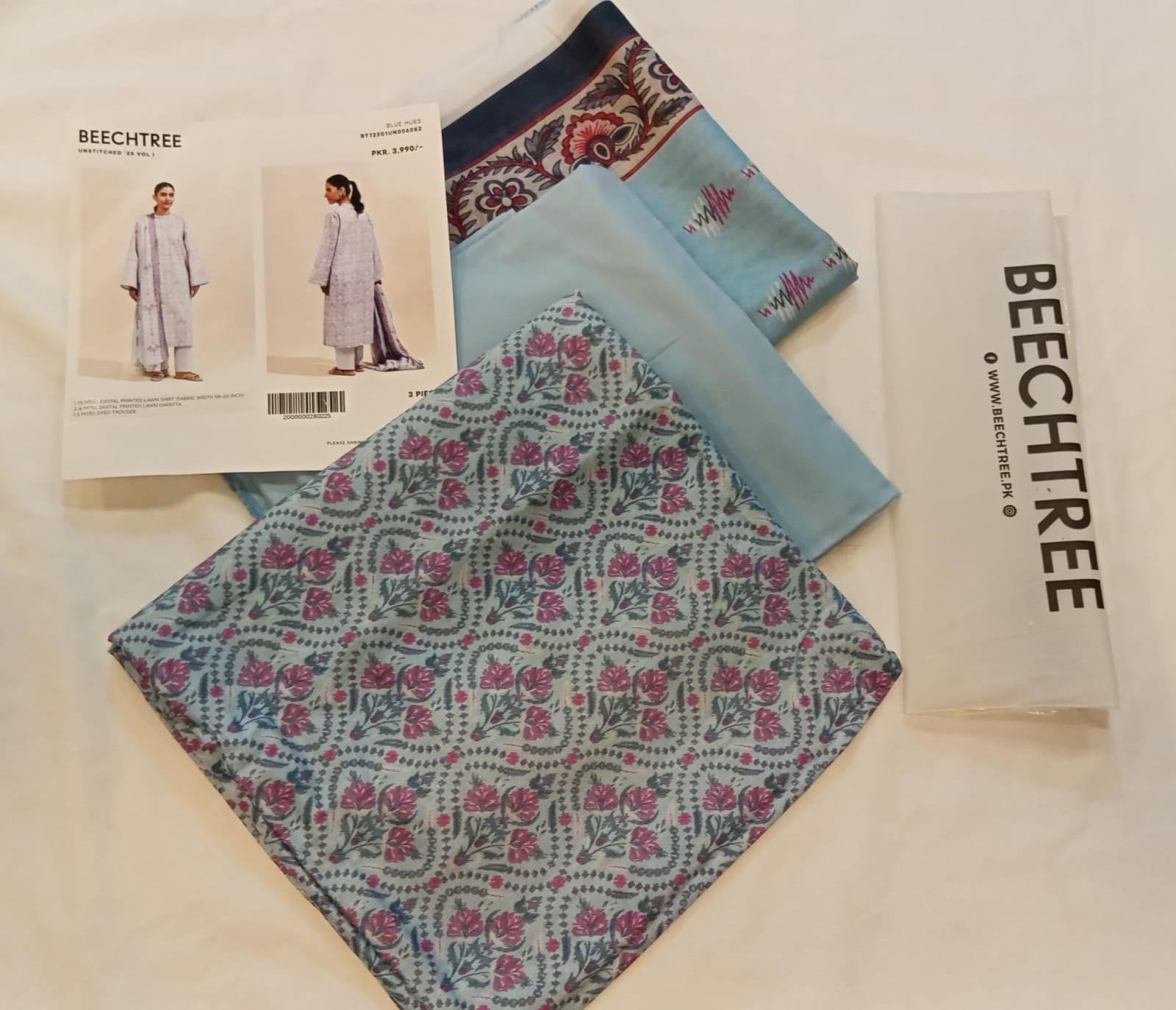 BeechTree 3 PIECE PRINTED LAWN SUIT-BLUE HUES (UNSTITCHED)