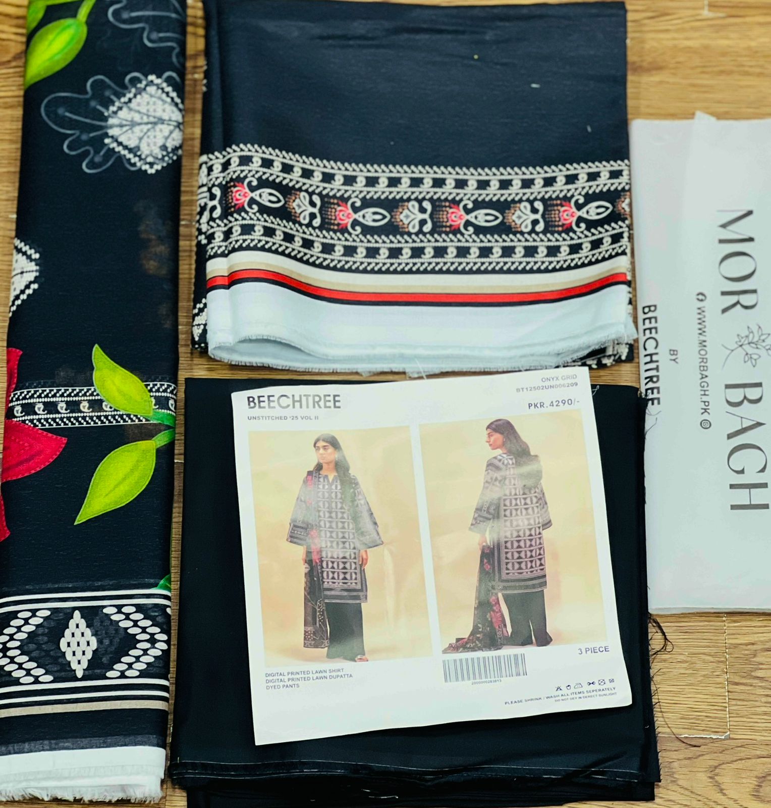 BeechTree 3 PIECE PRINTED LAWN SUIT-ONYX GRID (UNSTITCHED)