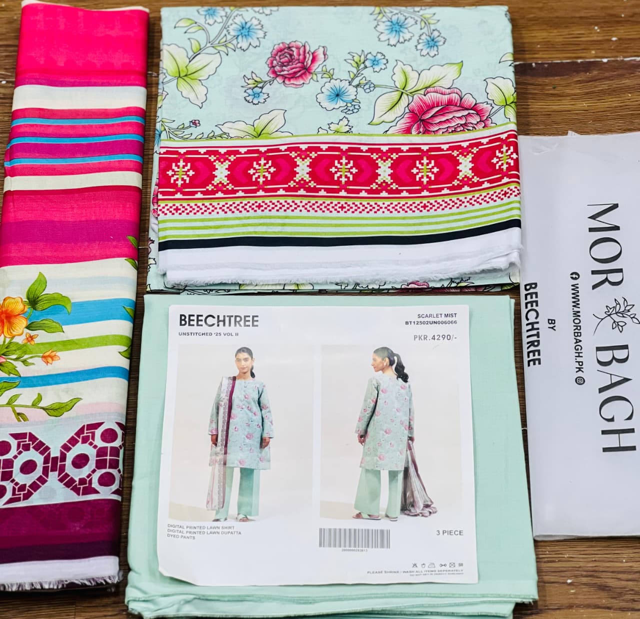 BeechTree 3 PIECE PRINTED LAWN SUIT-SCARLET MIST (UNSTITCHED)