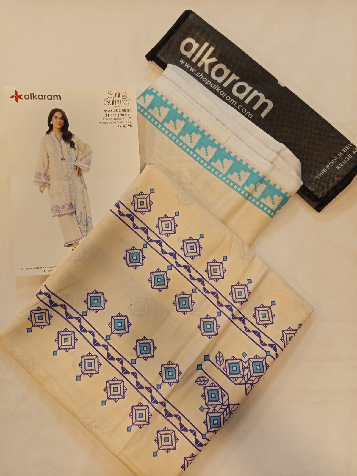 Beige | Al-Karam 2pc Unstitched Lawn Suit