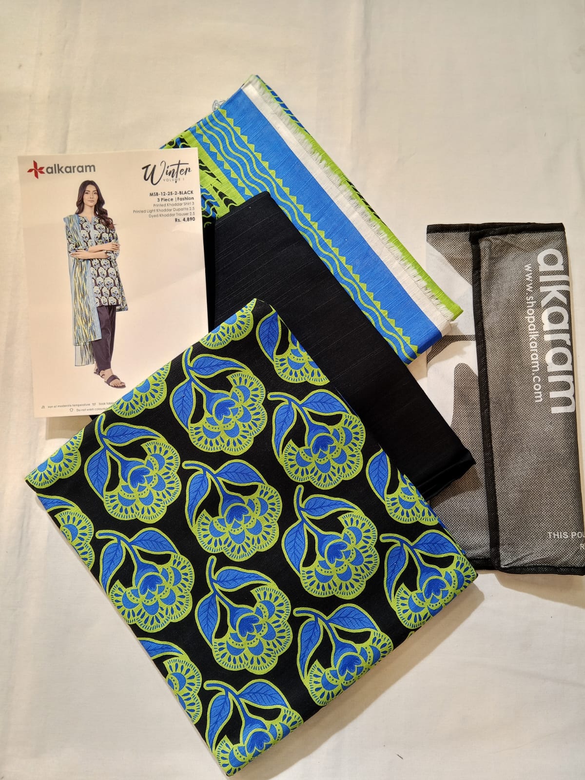 Alkaram 3pc Unstitched Khaddar Suit | Black