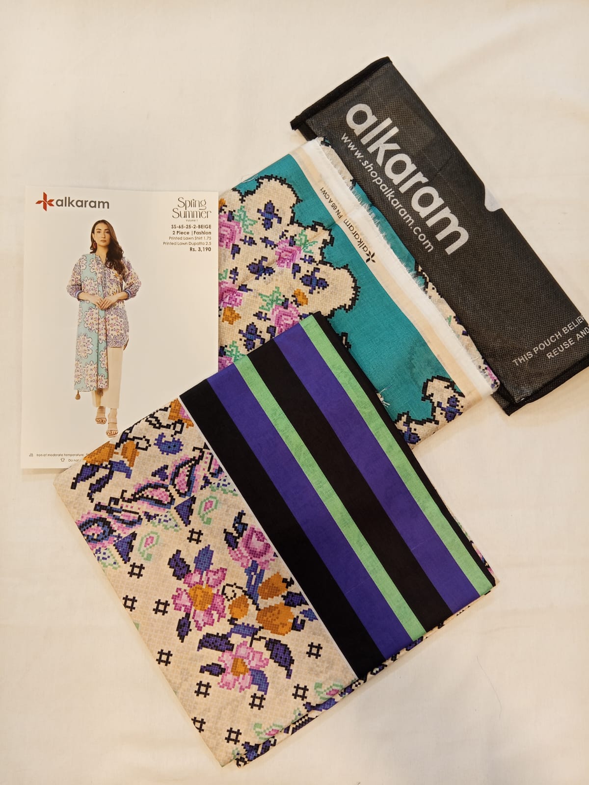 Beige | Al-Karam 2pc Unstitched Lawn Suit