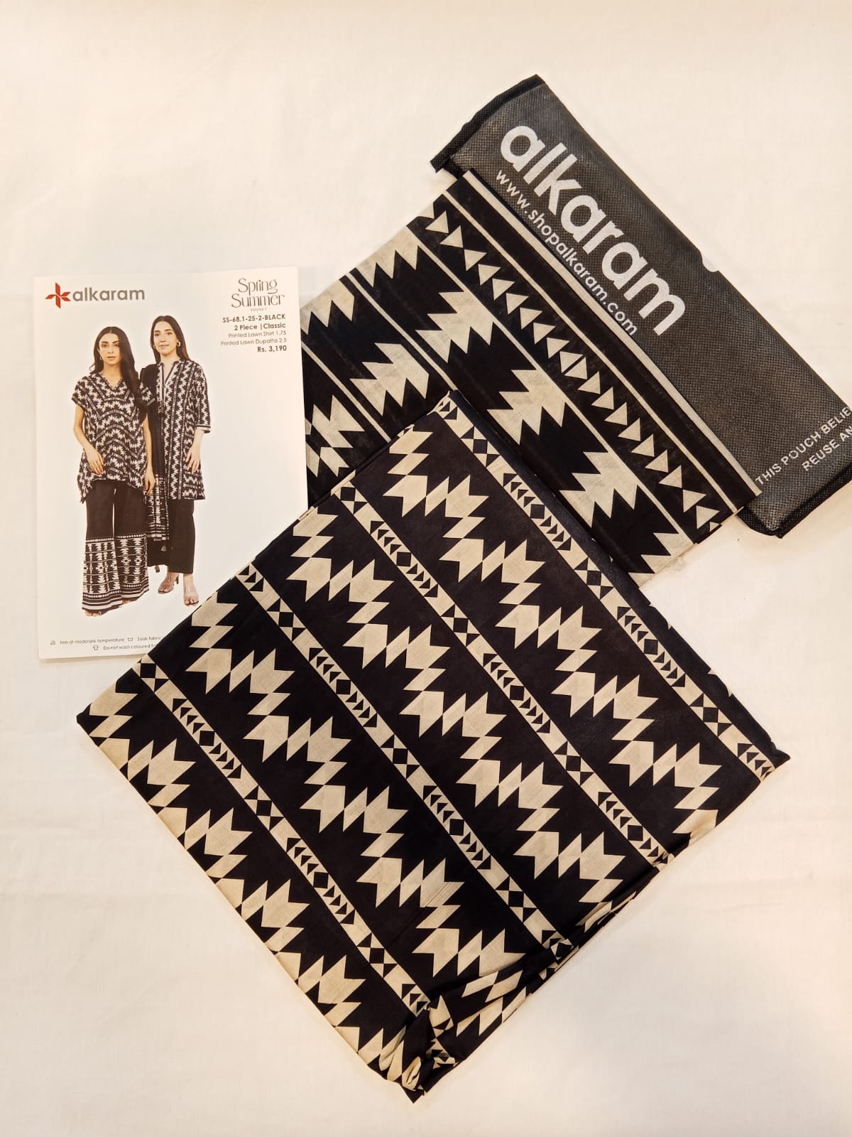 Black | Al-Karam 2pc Unstitched Lawn Suit