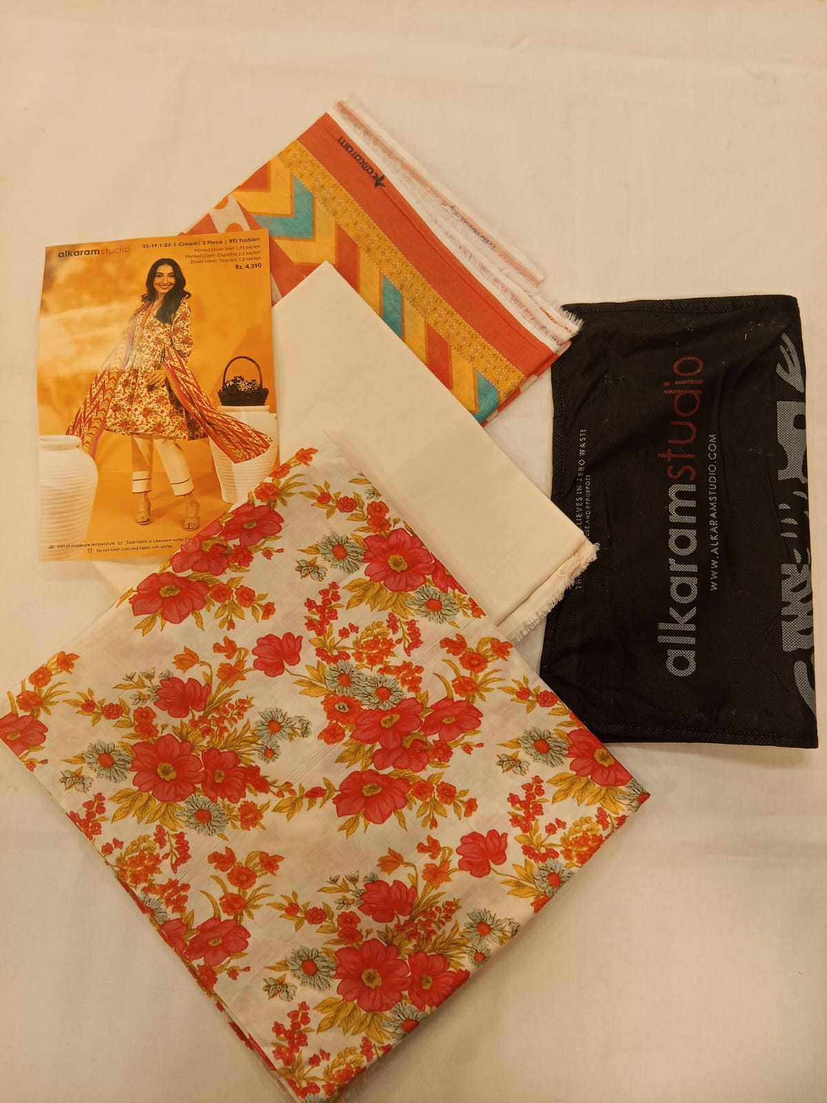 Cream | Al-Karam 3pc Unstitched Lawn Suit