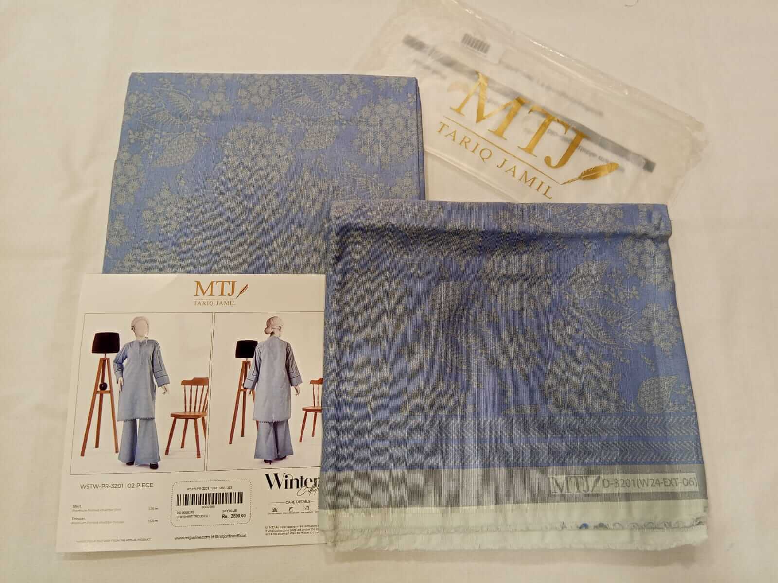 Sky Blue | Mtj-Tariq Jamil 2pc Unstitched Khaddar Suit