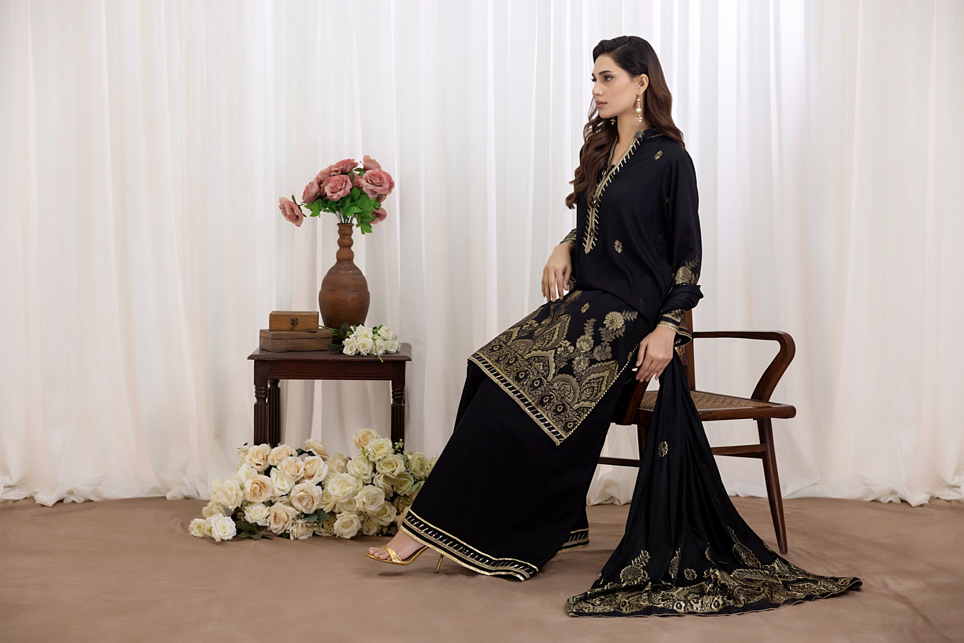 Black | Regalia 3pc Unstitched Jacquard Viscose