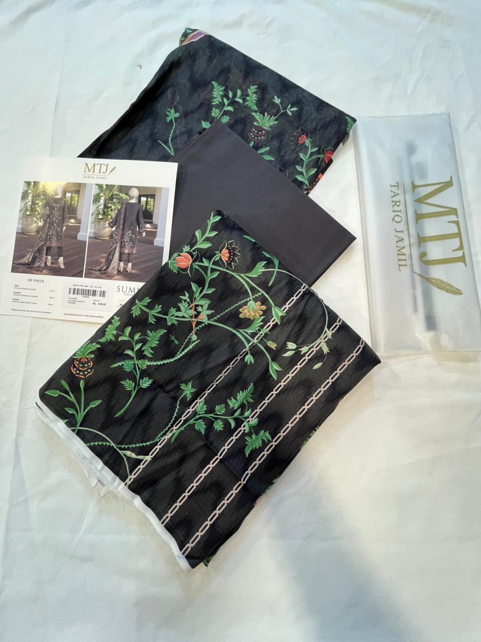 Mtj 3 PIECE PRINTED LAWN SUIT- Charcoal (UNSTITCHED)