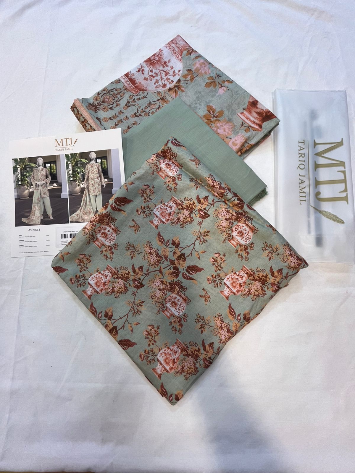 Mtj 3 PIECE PRINTED LAWN SUIT- Grey (UNSTITCHED)