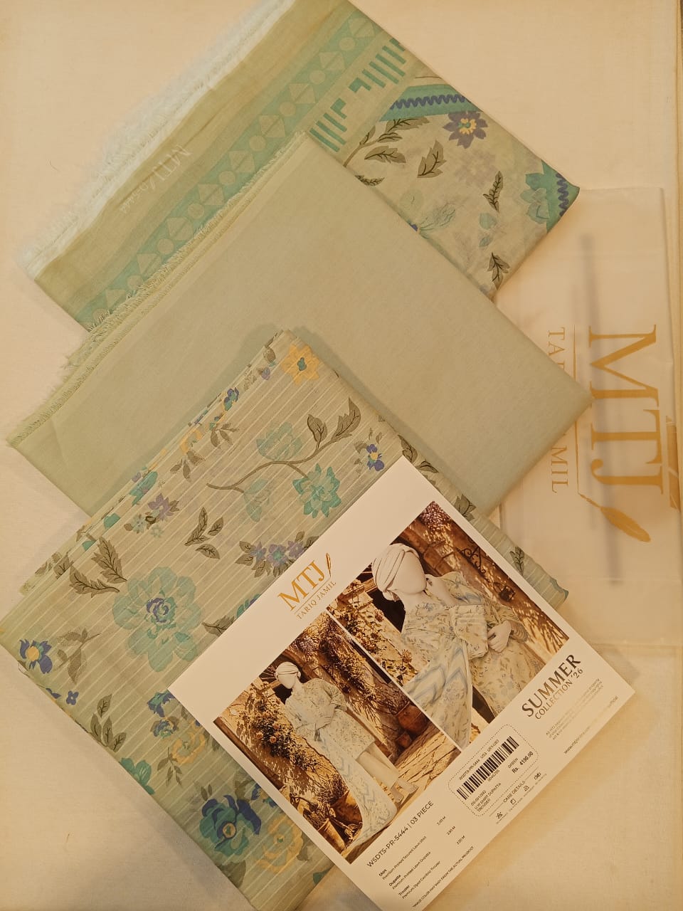Mtj 3 PIECE PRINTED TEXTURED LAWN SUIT - Green (UNSTITCHED)