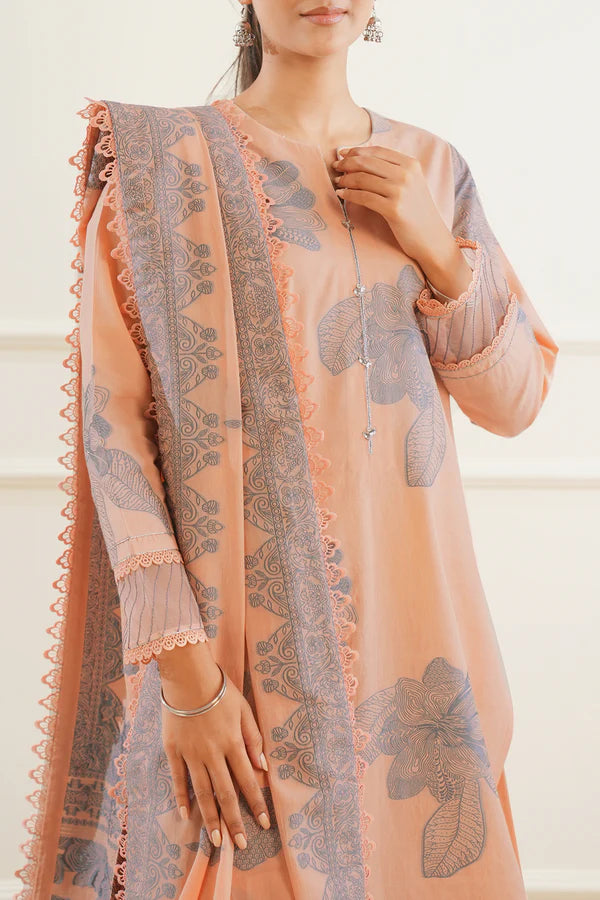 Peach | Saya 3pc Unstitched Cotton Jacquard 3-Piece
