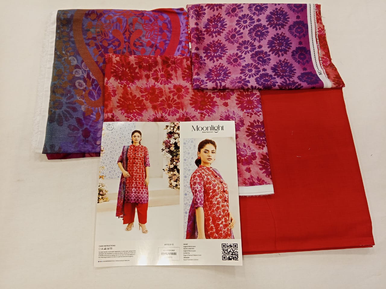 Red | Moonlight by GJ 3pc Unstitched Lawn Collection