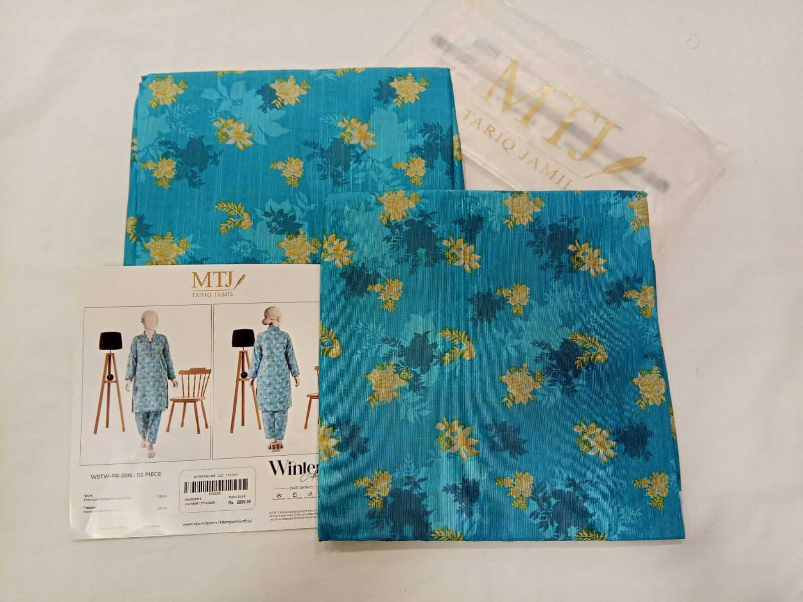 Turquoise | Mtj-Tariq Jamil 2pc Unstitched Khaddar Suit
