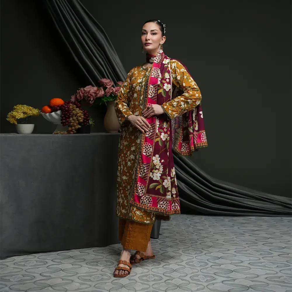 Salina 3pc Unstitched Linen | Mustard