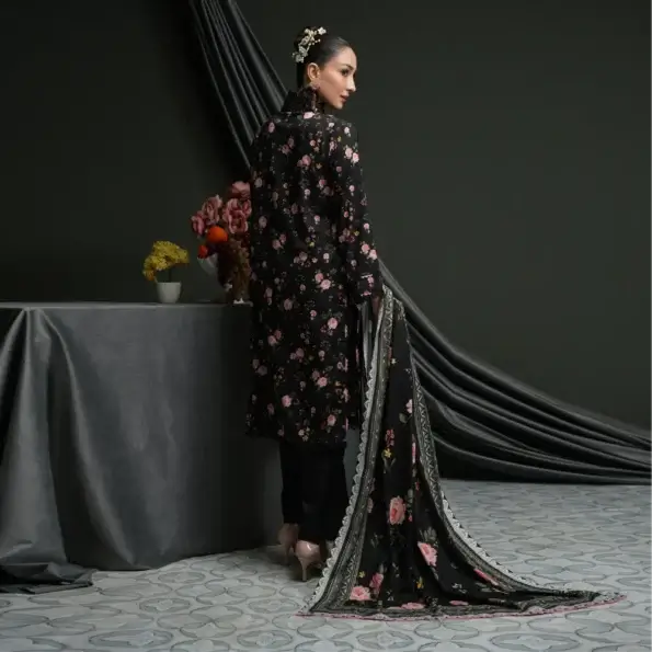 Salina 3pc Unstitched Linen | Black