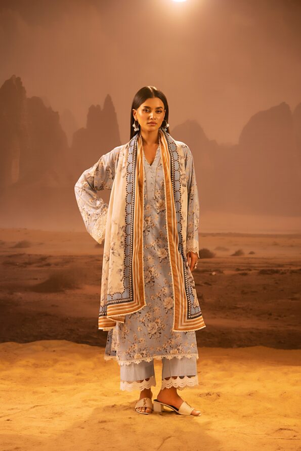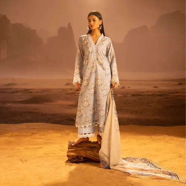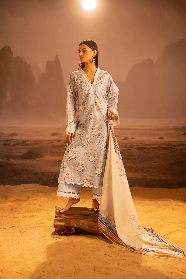 Salina 3pc Unstitched Mid Summer Cotton | Light Sky Blue