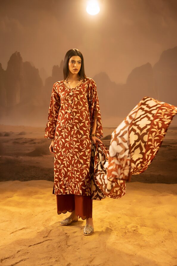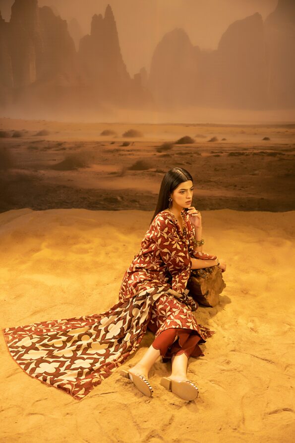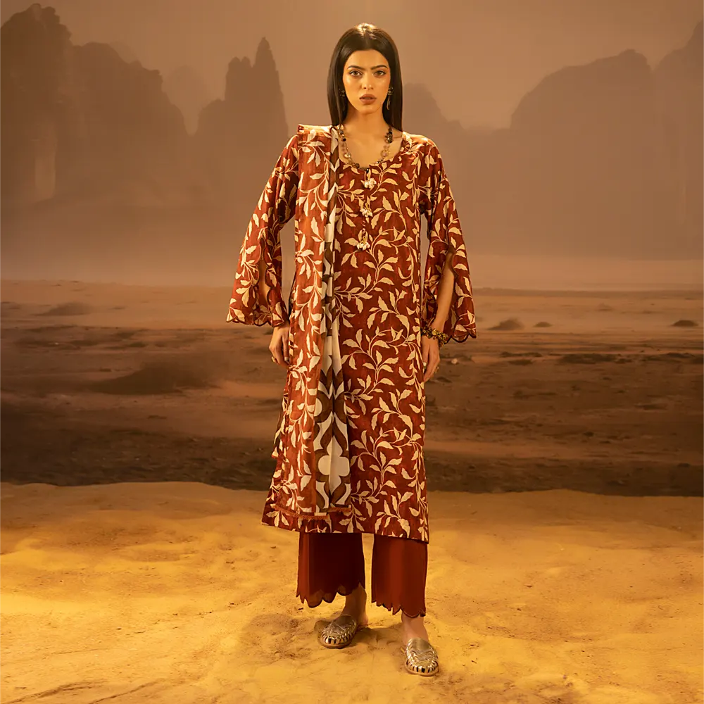 Salina 3pc Unstitched Mid Summer Cotton | Maroon