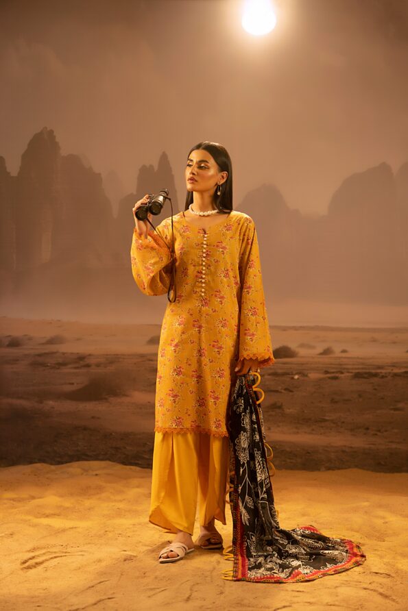 Salina 3pc Unstitched Mid Summer Cotton | Mustard