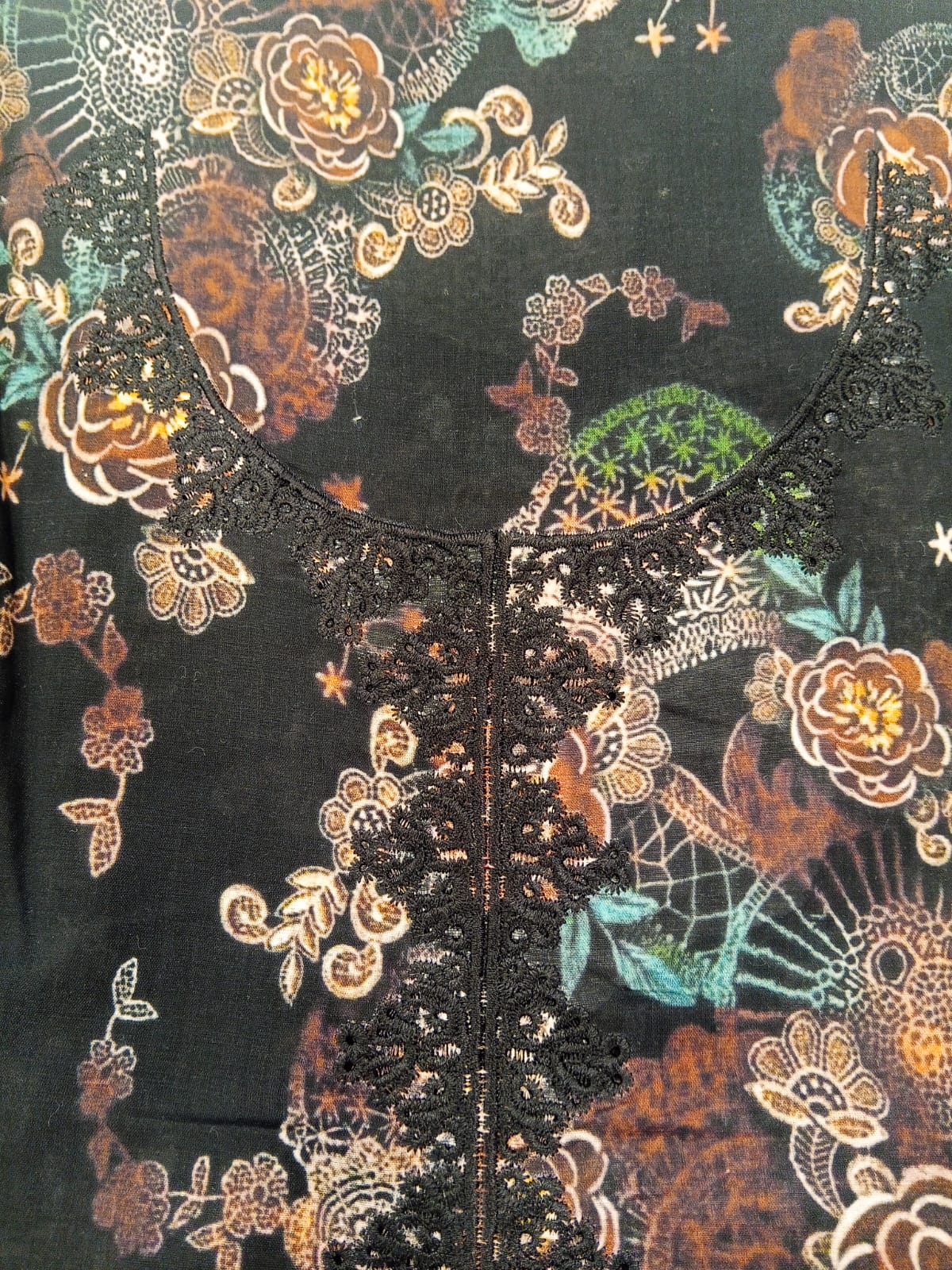Black | SAYA 3pc Unstitched Lawn Suit | Brenish
