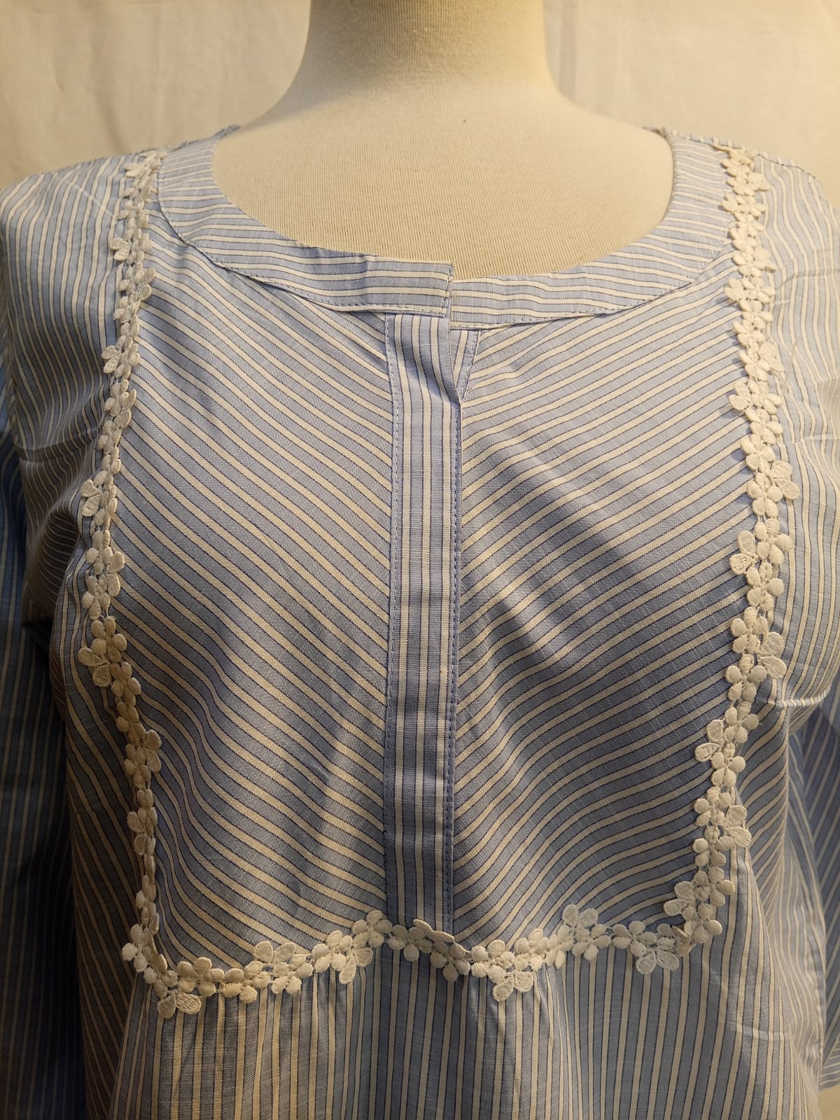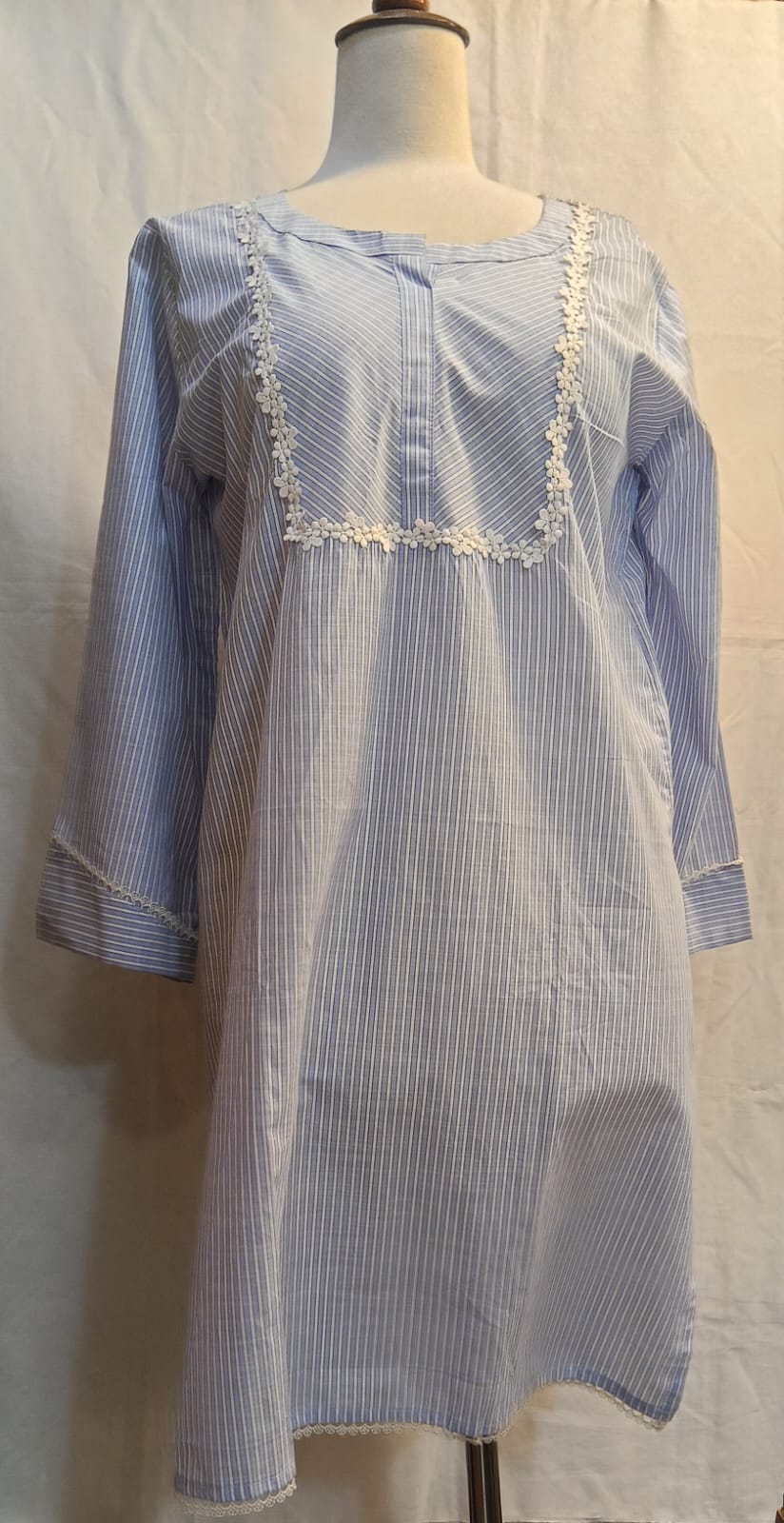 - Printed Cotton Shirt With Neck Lace SLeeve & Daman Lace Work