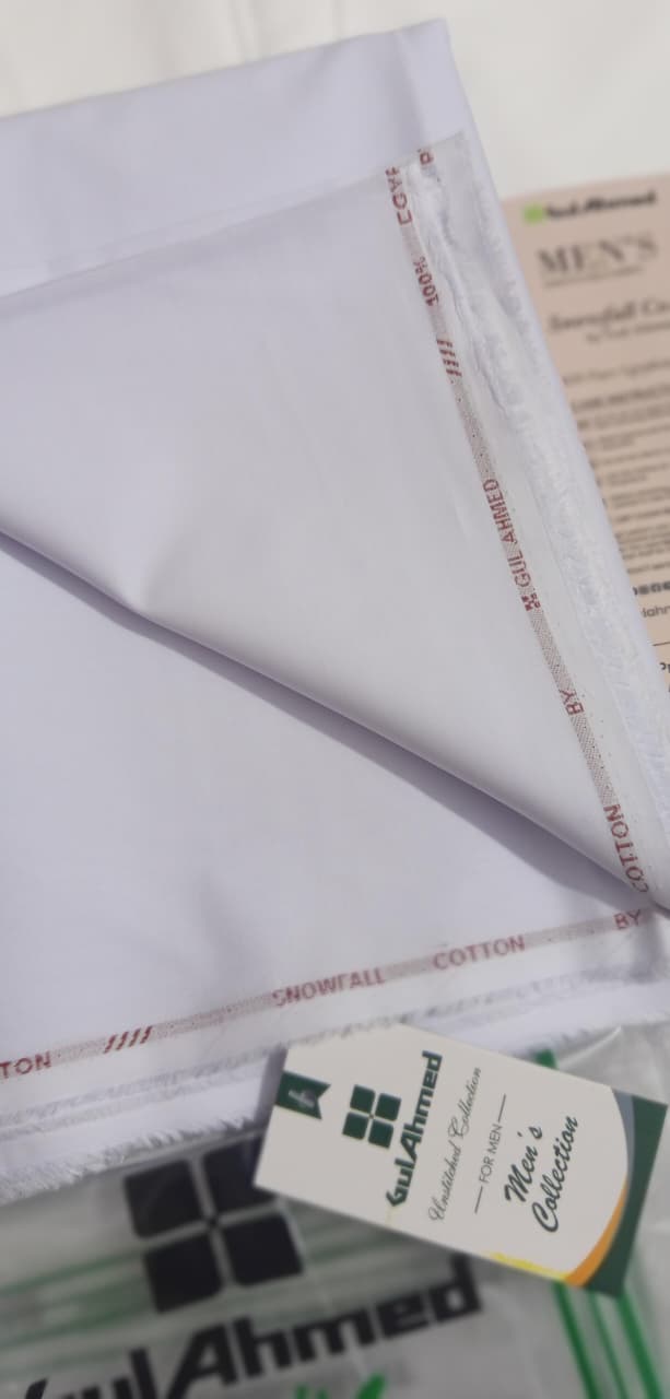 White | Gul Ahmed Men's Unstitched Soft Cotton