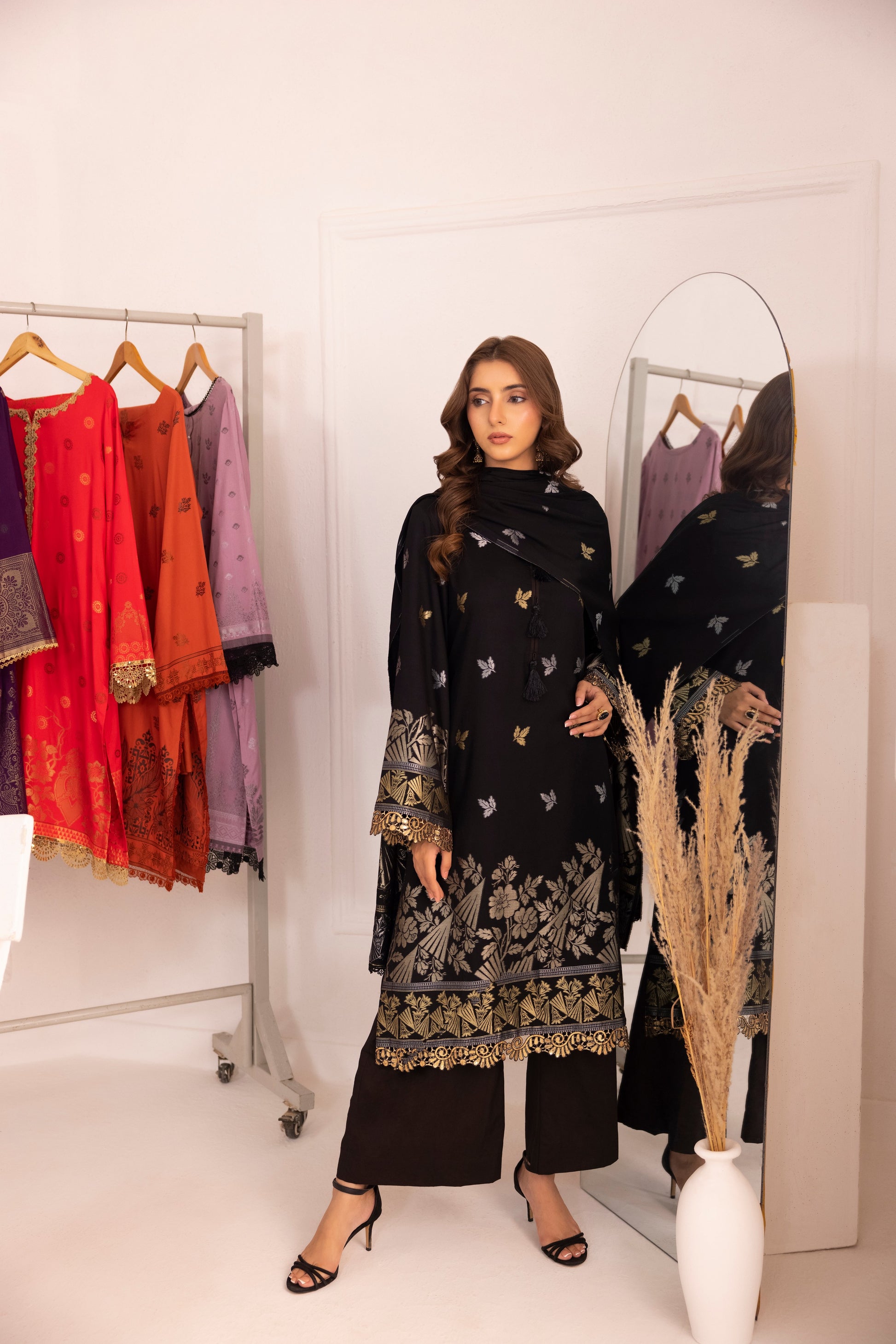 Black | Regalia 3pc Unstitched Jacquard Viscose